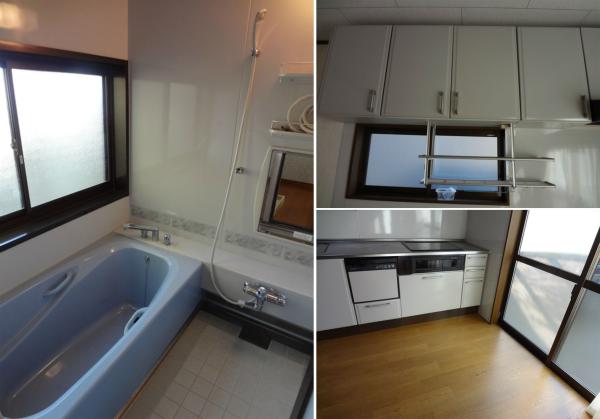 またこのお家、外観よりも玄関に入った時の雰囲気の良さが最高です。実は最近リフォームしたばかりとか。 玄関全体に質の良い木がふんだんに使用されています。以前住まれていたオーナーさん、なんと元材木屋さん。 床板や壁板にはこだわりを感じさせると共に木の温もりを大切にしている事が分かります。リフォームされているのは玄関だけではなく、廊下やトイレの壁も綺麗に仕上げられています。写真にある洗面台や、ユニットバスも白を基調としていて、とても清潔感があり非常に綺麗です。 そして、キッチン。最新のIHも導入済みで食洗機付き。レンジフードもほぼ真っサラな状態で、こちらも清潔感ある白を基調。
