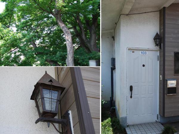 では103号室。 玄関には味が出ている外灯が。もう最初からグッときます。